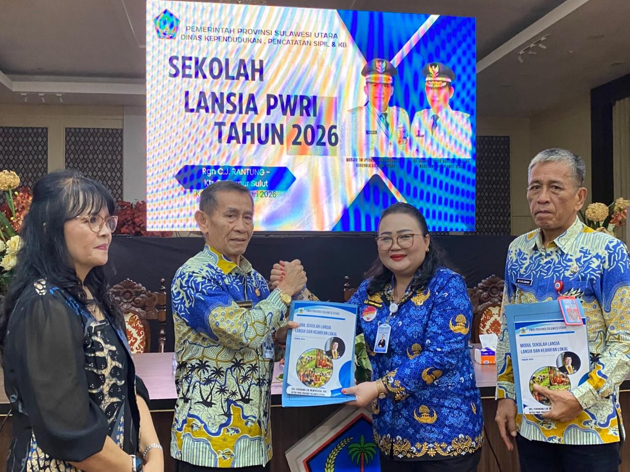 Manado, 19 Februari 2026 – Drs. Ferdinand E.M. Mewengkang, MM, Ketua PWRI Provinsi Sulawesi Utara sekaligus Koordinator Staf Khusus Gubernur Sulawesi Utara, menyerahkan Buku Modul Sekolah Lansia berjudul “Lansia dan Kearifan Lokal” kepada Kepala Perwakilan Kemendukbangga/BKKBN Provinsi Sulawesi Utara serta Kepala Dinas Kependudukan, Pencatatan Sipil dan Keluarga Berencana Daerah Provinsi Sulawesi Utara di Ruang C.J. Rantung, Kantor Gubernur Sulawesi Utara, Kamis (19/2).